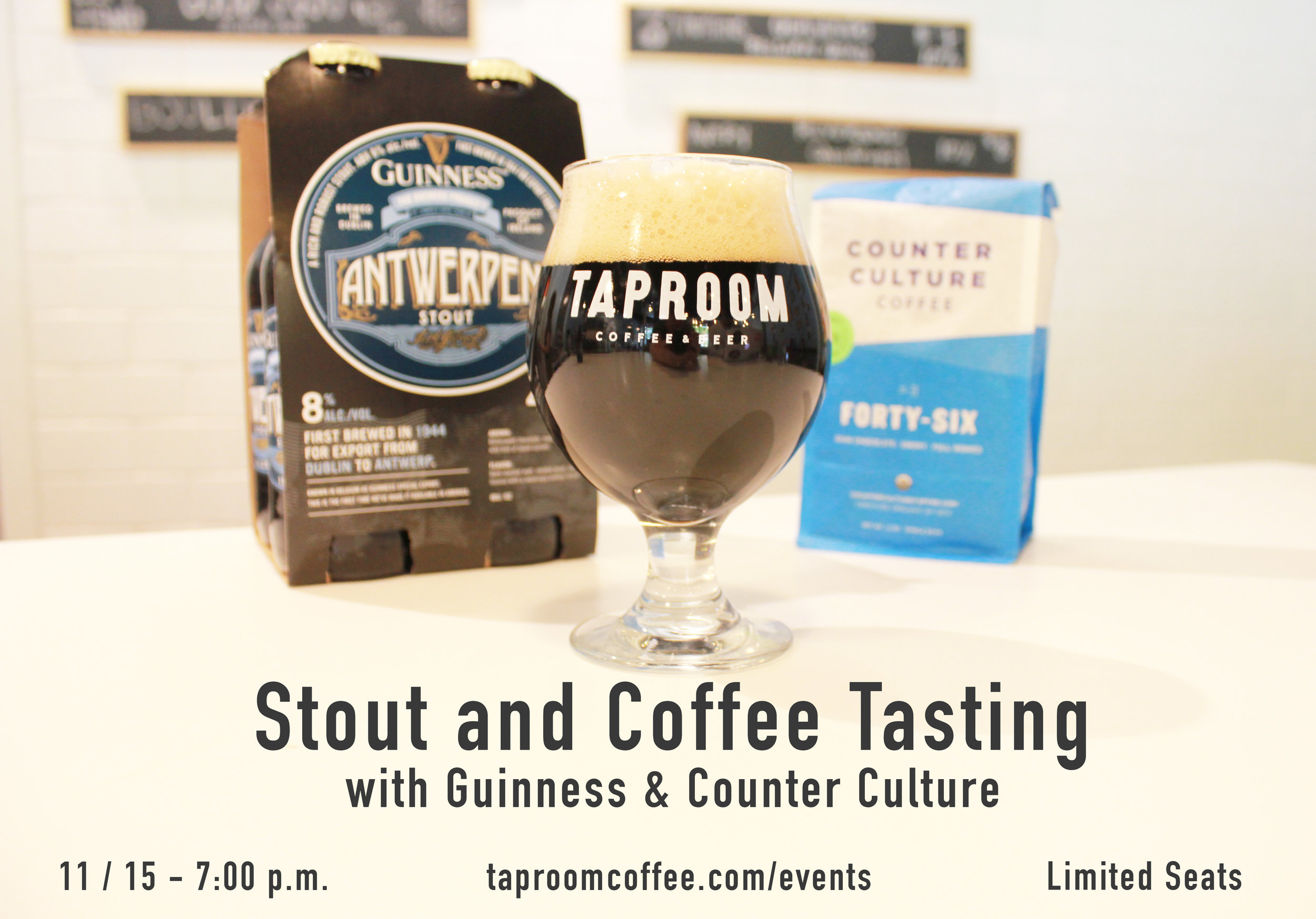 Taproom Coffee and Beer in Kirkwood is hosting a tasting event featuring beers from the Guinness Brewery and coffees from Counter Culture. Discussion will be focused on similarities in flavor profile, roasting, fermentation, and the brewing process of both beer and coffee. Included in the tasting will be a new imperial stout from Guinness, the Antwerpen Stout, as well as unique draft coffee beverages from Taproom.