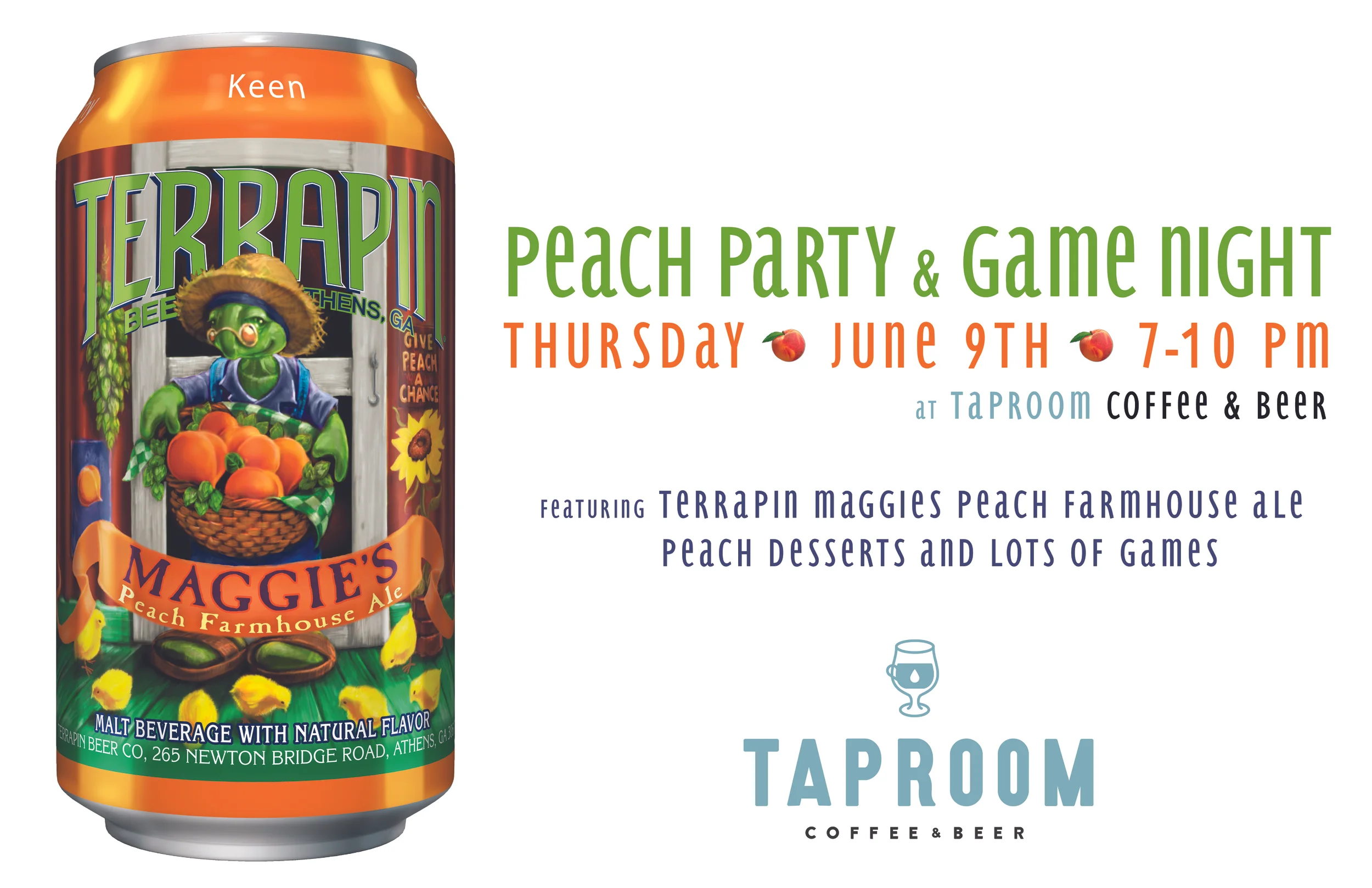 It's that time of the year for Terrapin's annual release of Maggie's Peach Farmhouse Ale, and we're celebrating with a Peach Party!
